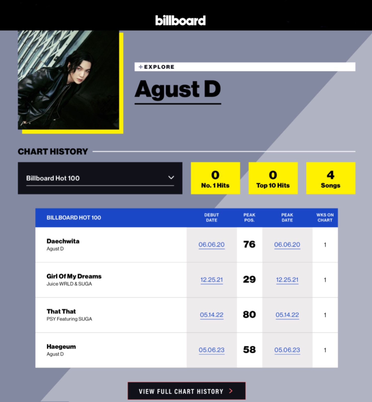 ✨✨ Suga / AgustD และ Jungkook มีไปร์ไฟล์และประวัติชาร์ตของตัวเองบน Billboard.com แล้ว 🎉🎊 จากผลงานในฐานะศิลปินเดี่ยว