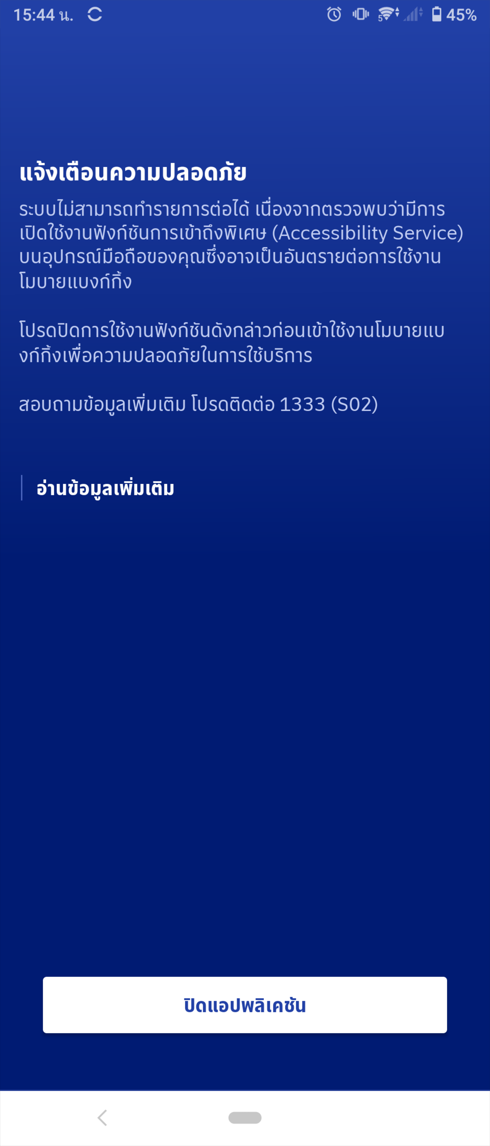 เมื่อวานปกติดี แอพ ธ. อื่นก็ใช้ได้ปกติ
