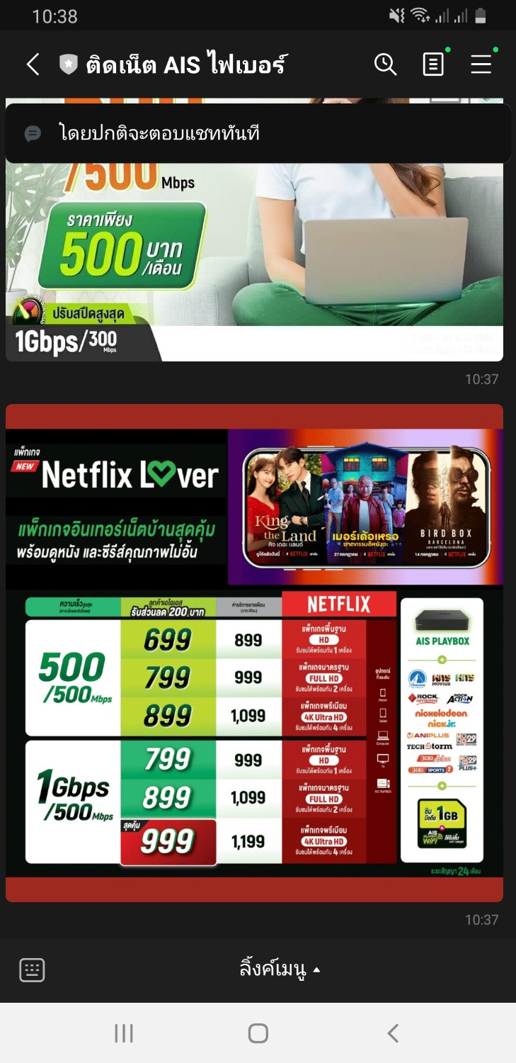 ประสงค์ต้องการเปลี่ยนแพ็กเกจเน็ตบ้าน Ais