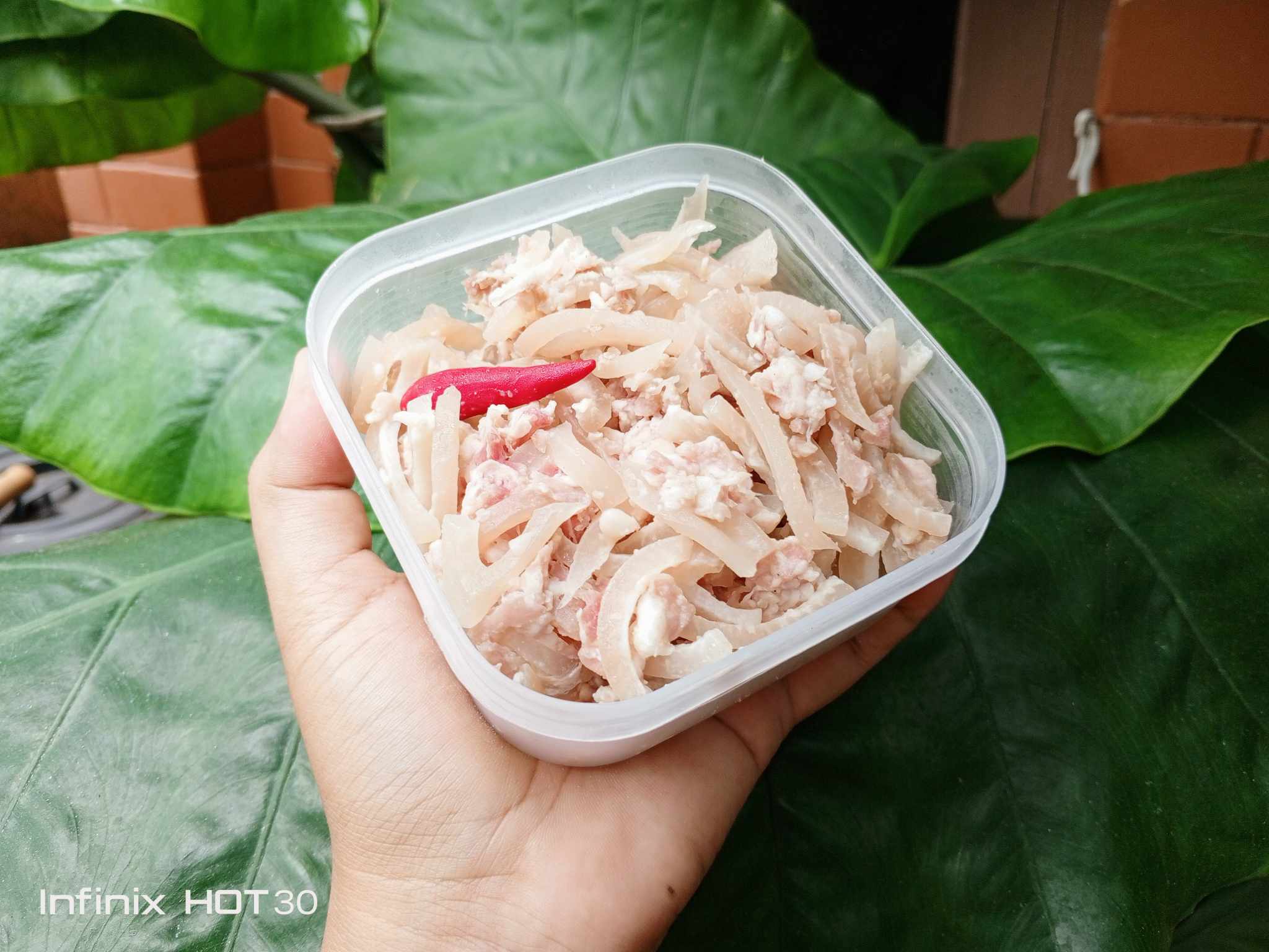 จิ๊นส้ม ซึ่งแม่ของเราทำเตรียมไว้ให้สดๆเลย เพราะเป็นของที่เราชอบกินมาก โดยเฉพาะเอามาเจียวไข่ หรือจะใส่แกงพื้นบ้าน รวมถึงห่อใบตองแล้วย่างก็อร่อยค่ะ