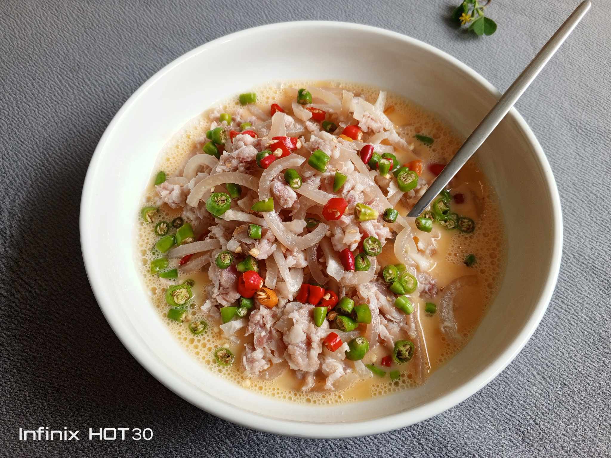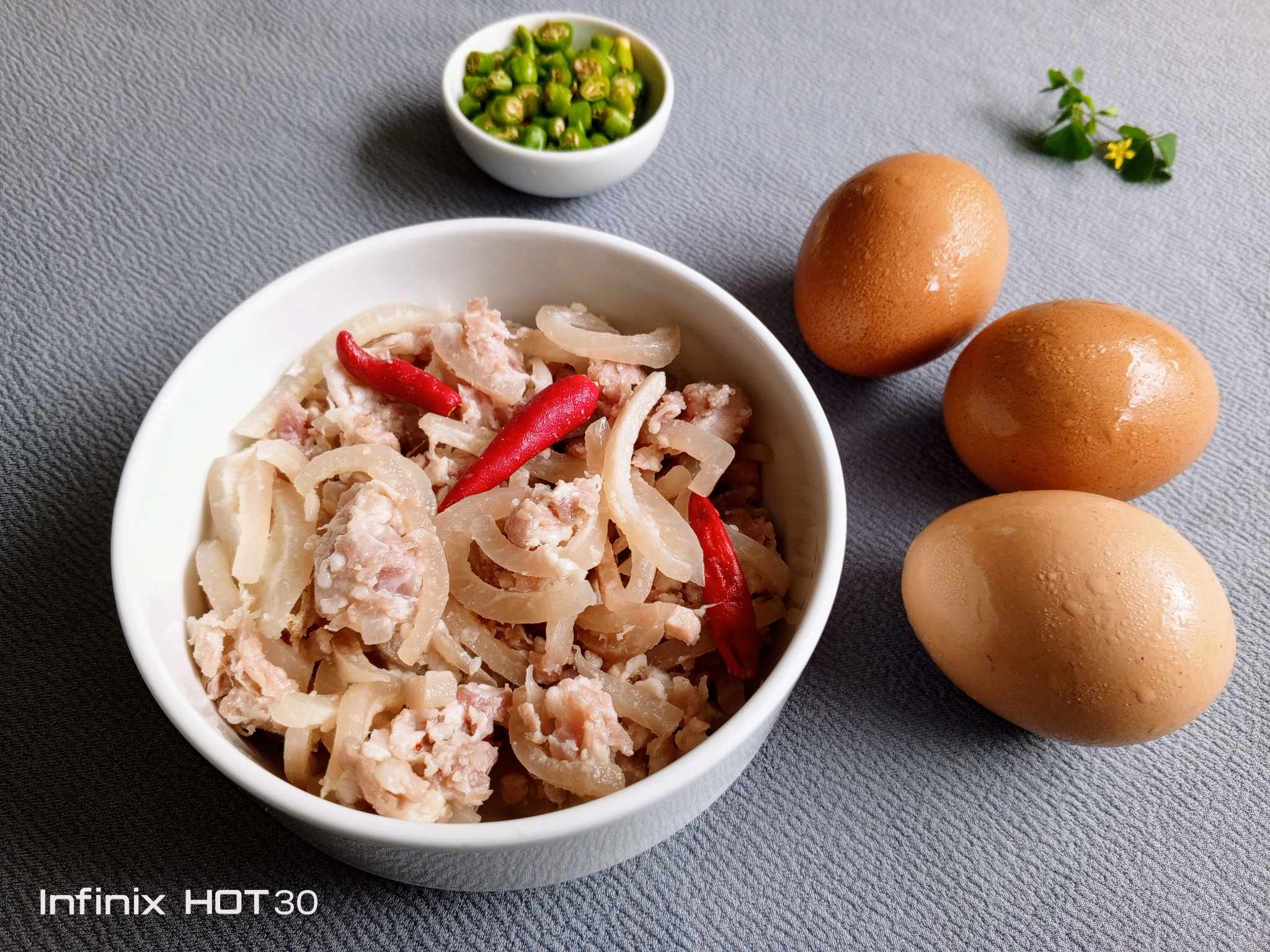วัตถุดิบและเครื่องปรุงไข่เจียวแหนม