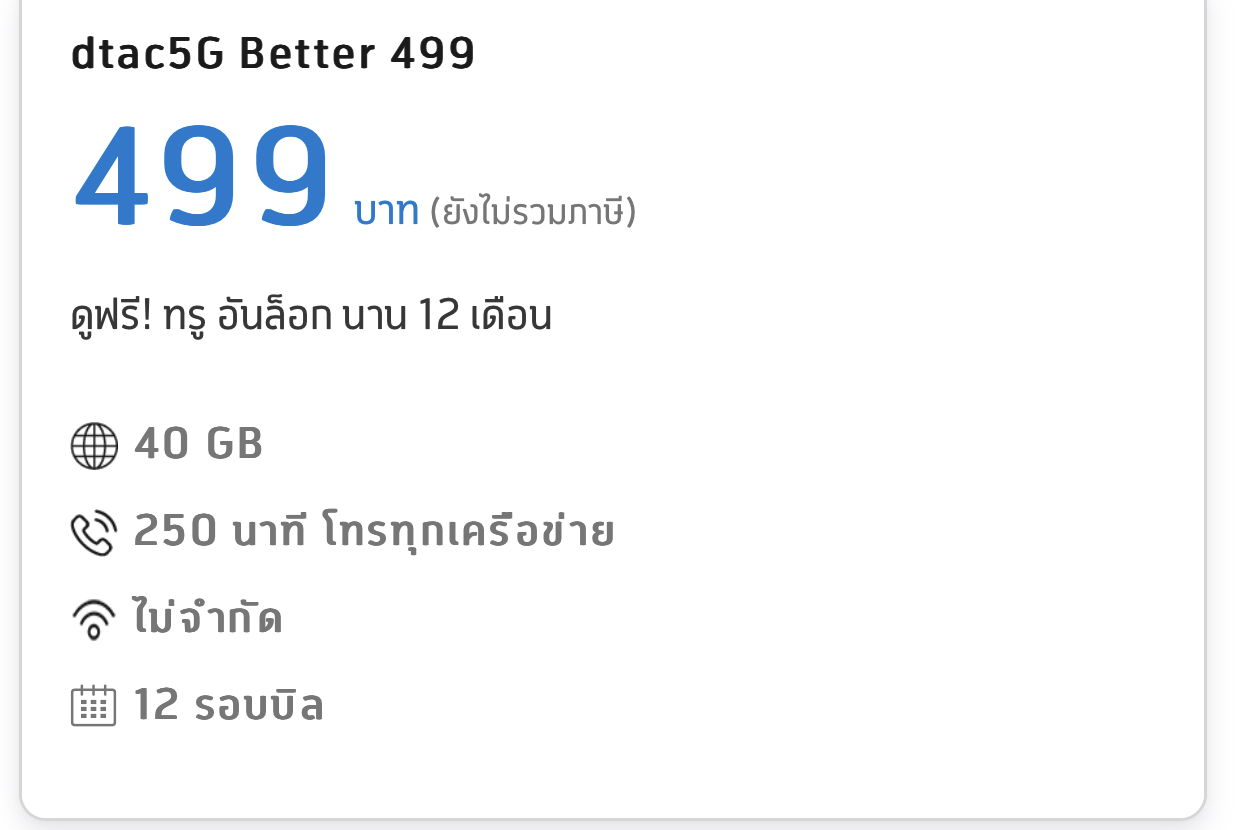 สวัสดีค่ะ ปัจจุบันหนูใช้ซิมดีแทคแบบเติมเงิน เป็นเวลา10ปี ช่วงแรกๆที่ใช้ใช้เน็ต 150บาท 4mbps แต่โปรนั้นน่าจะถูกยกเลิกไป อยากทราบว่าปัจจุบันทางค่ายมีโปรรายเดือนไม่เกิน300บาท ความเร็วไม่อั้นไม่ลดสปีดไหมค