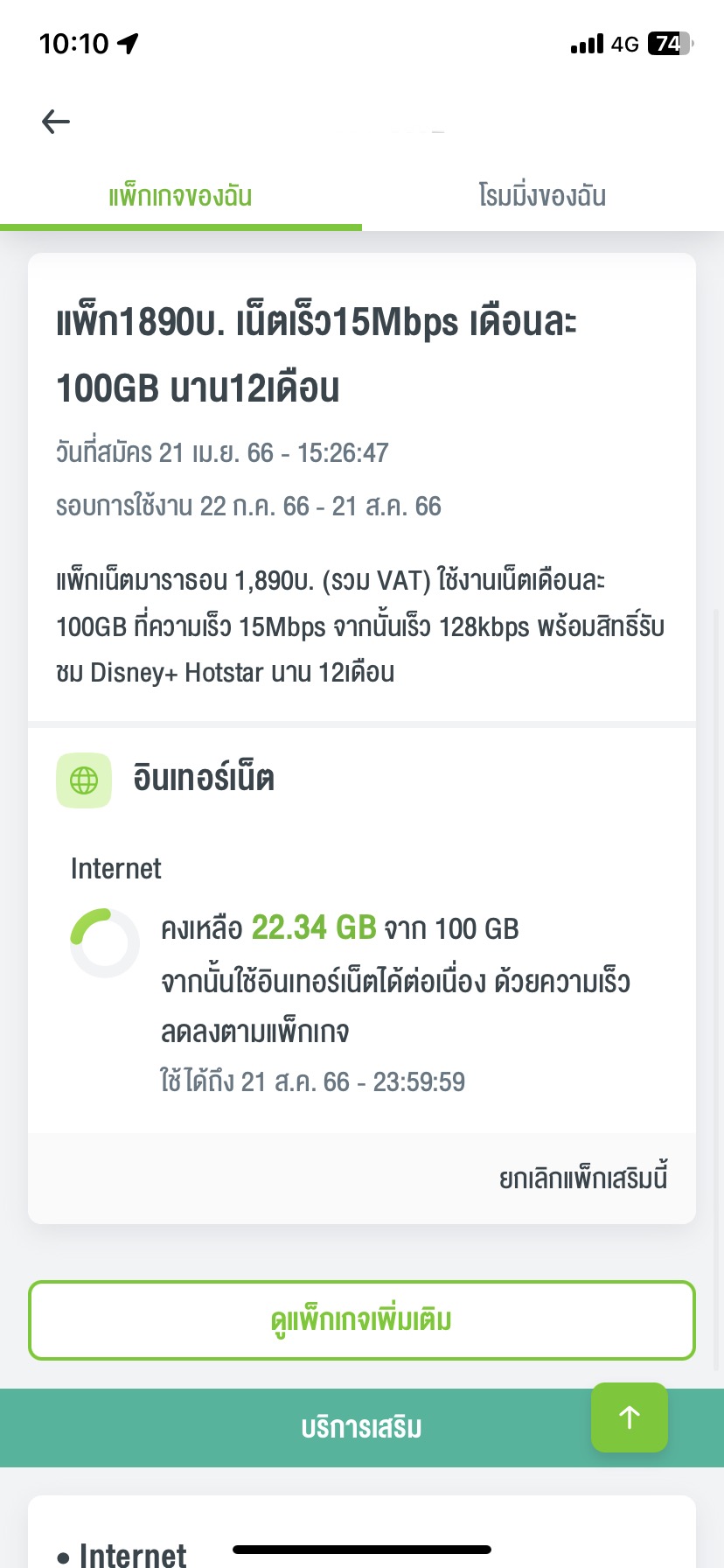เนื่องจากตอนนี้ใช้โปรแบบ รายปี 12 เดือน ราคา 1890 บาท ใช้เน็ตเดือนละ 100GB ที่ความเร็ว 15Mbps จากนั้นเร็ว 128kbps