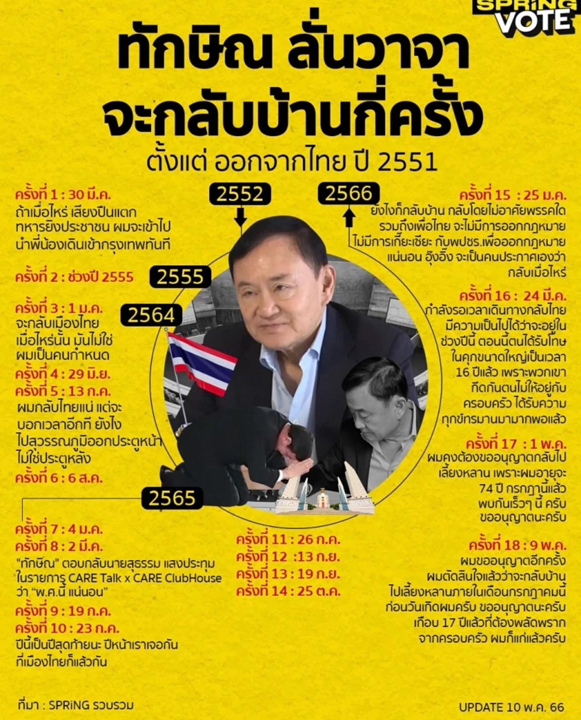 ถ้า ทักษิณ ไม่กลับไทย วันที่ 10 ส.ค.66 แกนนำ และ สส เพื่อไทย ทุกคน ที่บอกแก่ประชาชน จะรับผิดชอบยังไงที่หลอกลวงชาวโลก?
