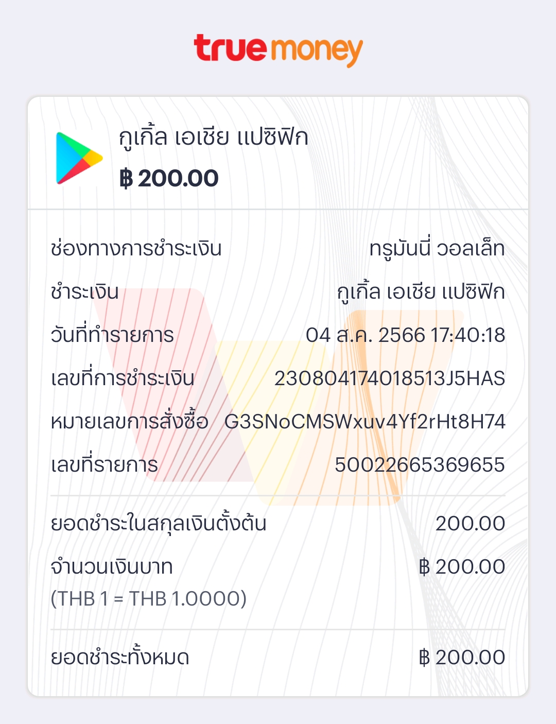 สวัสดีค่ะ ขอสอบถามหน่อยค่ะ คือเราสมัครสมาชิกช่องYoutubeช่องนึงไป จ่ายผ่าน True money ไป ทางทรูหักเงินไปแล้ว แต่พอไปดูสมาชิกในช่องมันไม่ขึ้นค่ะ เช็คใน เพลสโตร์ไป