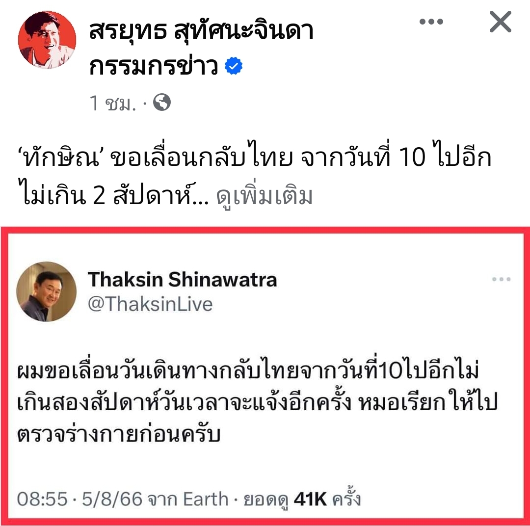 ฮือฮา!! พระเอกดัง โพสต์ชื่นชมทักษิณ ไม่สนใครจะว่ายังไง!! จากกรณีที่ ศาลฎีกามีคำสั่งว่า การรักษาตัวที่โรงพยาบาลตำรวจ “ไม่ชอบด้วยกฎหมาย” และ ไม่นับว่าเป็นการบังคับโทษตามกฎหมาย จึงมีคำสั่งให้