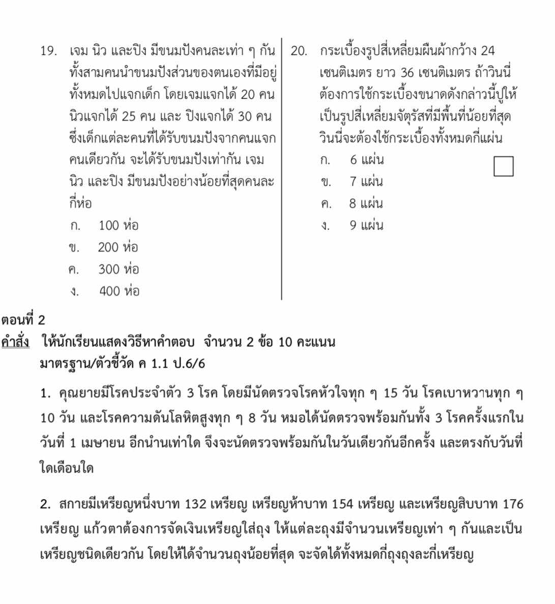 รบกวนเพื่อนๆที่เก่งคณิตศาสตร์ช่วยทำการบ้าน ป.6 ค่ะ😅 (ขอบคุณนะคะ🙏❤💞)