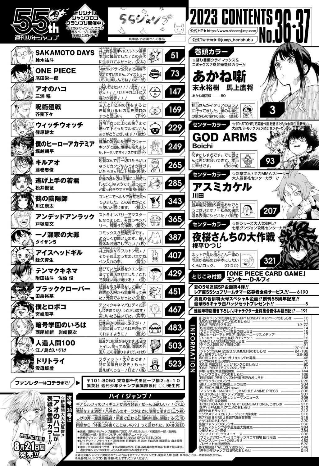 - จัมป์ฉบับนี้จะอัพลงM+ในวันที่ 6 สิงหาคม เวลา 22.00 น. https://mangaplus.shueisha.co.jp/updates