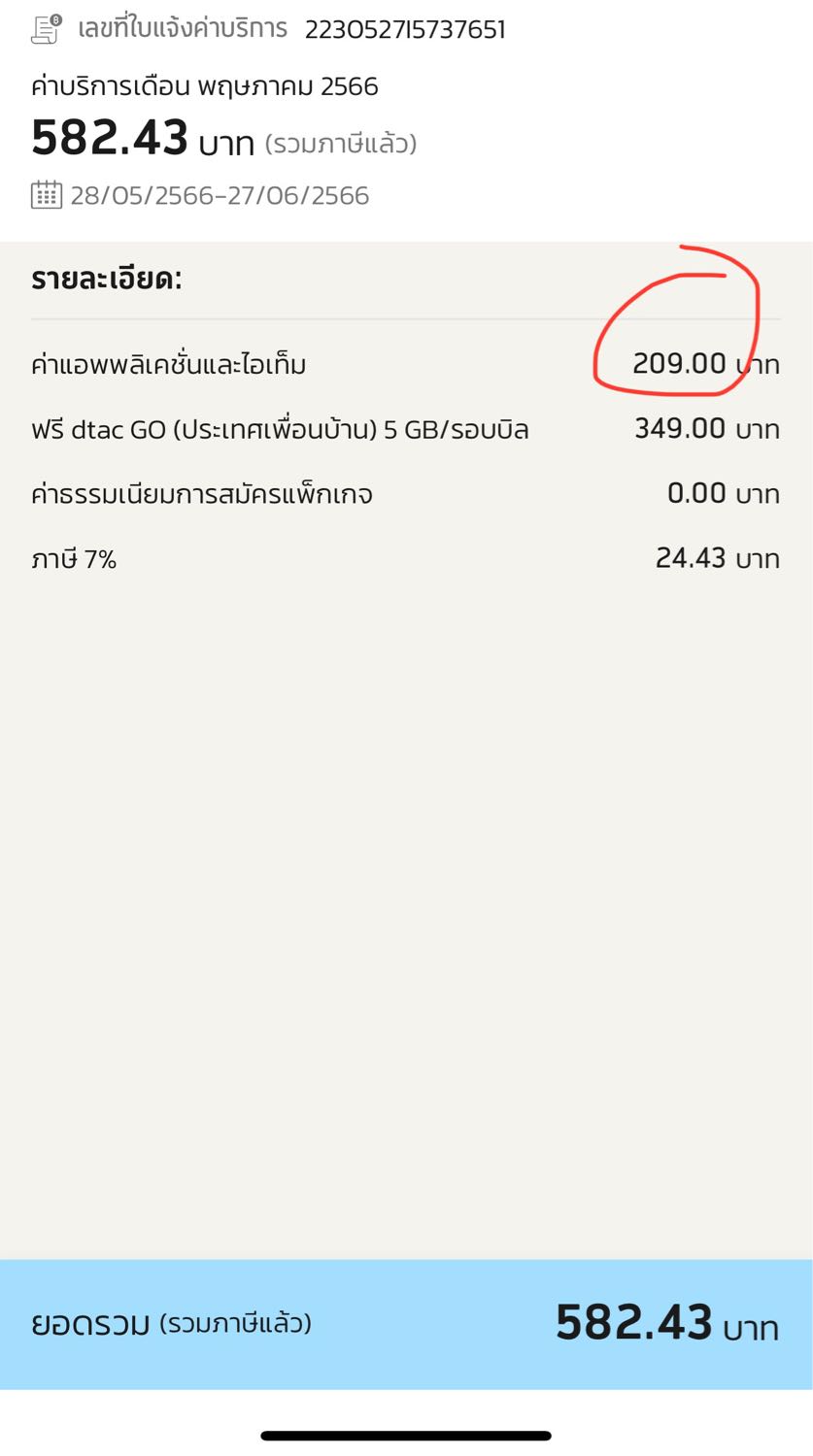 พอดีแอพมันรันไปสองเดือนติดแล้วทำเรื่องคืนเงินสำเร็จแล้ว เดือนละ209 แต่บิลในยอดจองค่ายมือถือ