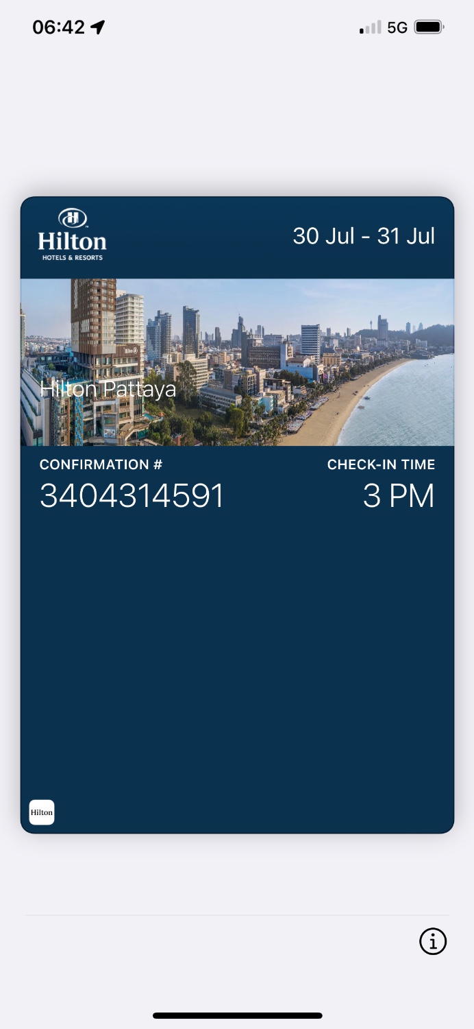 สวัสดีค่ะ มาเที่ยวพัทยา พักที่โรงแรมฮิลตัน พัทยา ระหว่างวันที่ 30 กรกฎาคม - 31 กรกฎาคม 2566