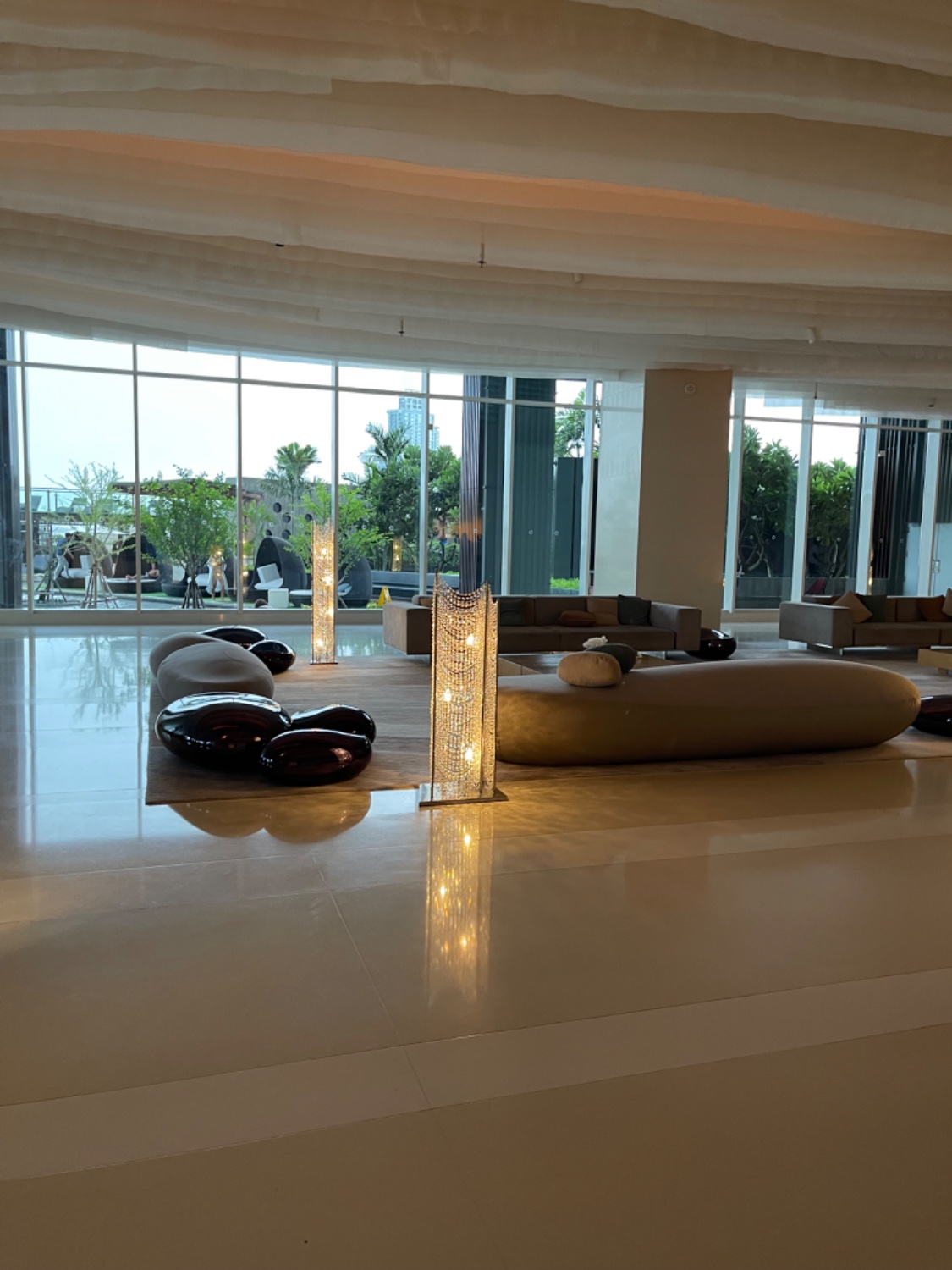 ล็อบบี้เลาจน์ที่เห็นวิวทะเลสวยของอ่าวพัทยาแบบพาโนรามา