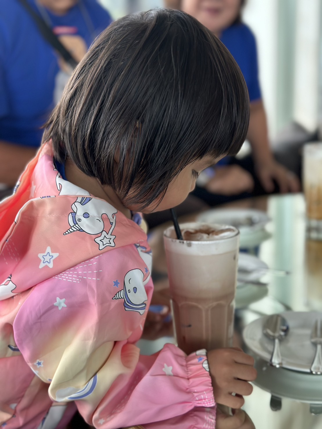 เราเลยสั่ง ช็อกโกแลตเย็นให้ลูกสาว มีขนมเค้ก แซนด์วิชเล็กๆ มาให้ ประกอบการนั่งรอ ดูภาพประกอบค่าา