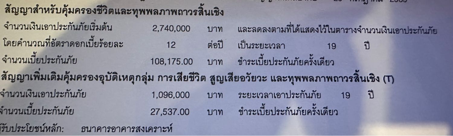 สอบถามเรื่องประกันชีวิต (MRTA)