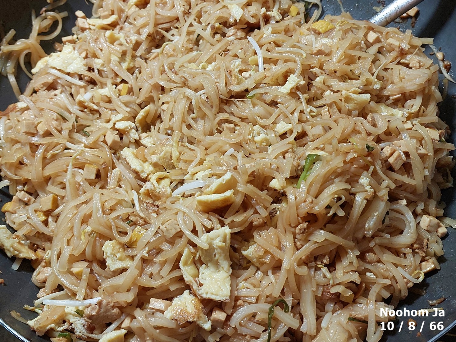ผัดหมี่ซั่วเหลืองใส่คะน้าหมูไข่