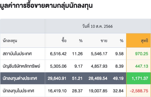 Sinthorn Summary 10/8/2566 : ต่างชาติซื้อสุทธิ 1,171.37 ลบ.