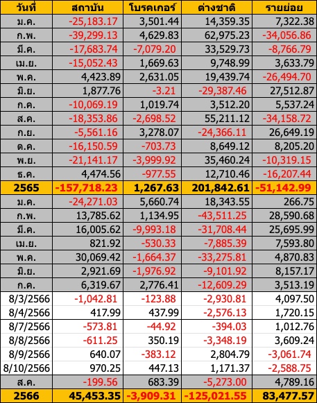 Sinthorn Summary 8/3/2566 : ต่างชาติขายสุทธิ -3,987.97 ลบ.