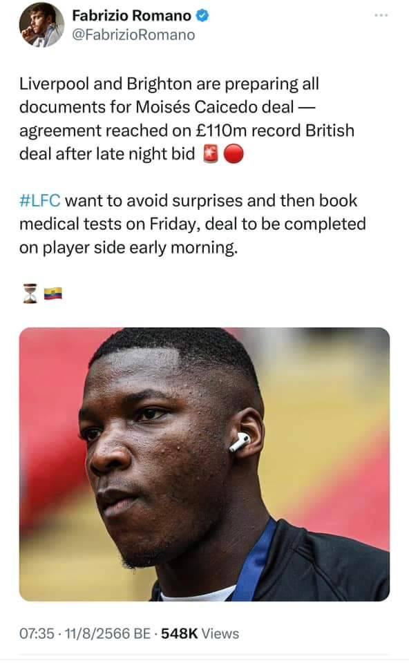 ตอนนี้ แฟนลิเวอร์พูล เริ่มเสียดาย มอยเซส ไคเซโด้ ของเชลซีมั้ยครับ ที่ลิเวอร์พูลเคยยื่นซื้อ 100 ล้านปอนด์