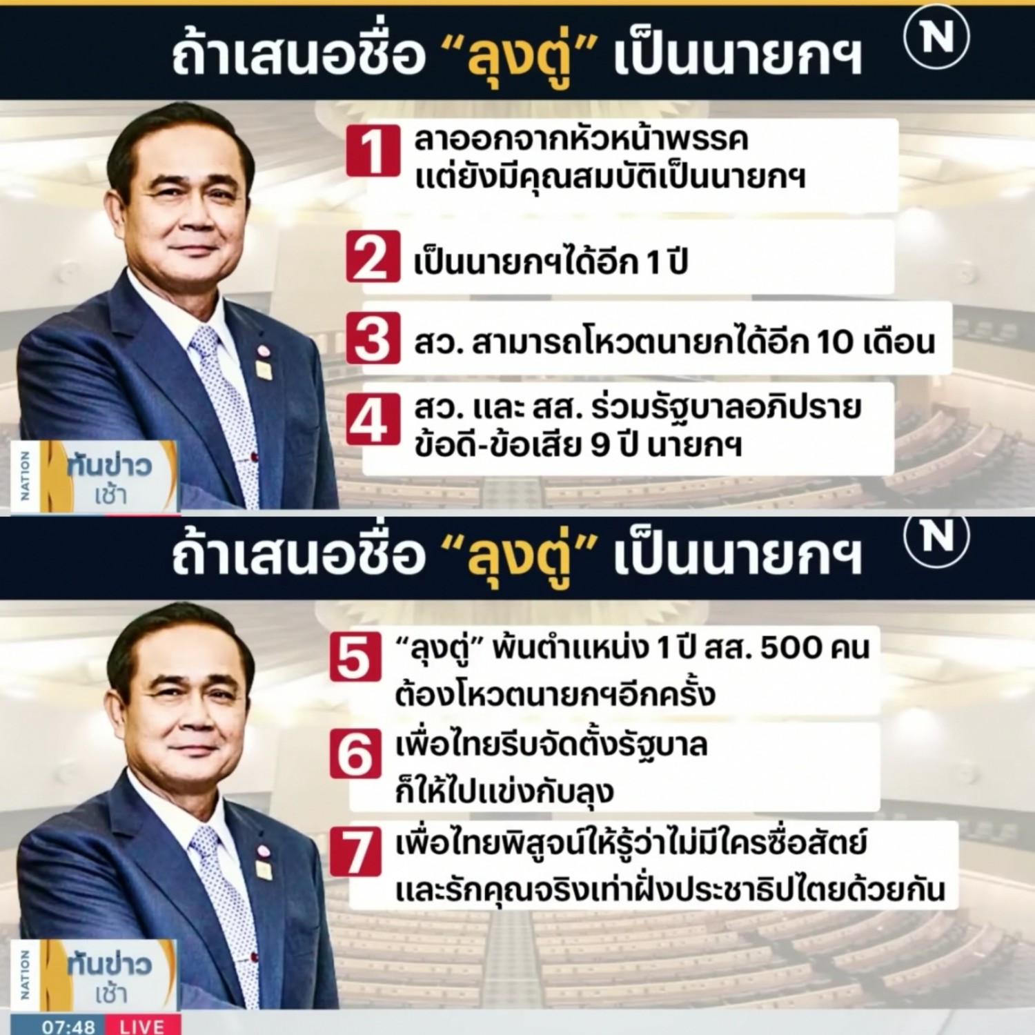 ถ้าจะมีการเสนอชื่อ พล.อ.ประยุทธ์ ในวันโหวตเลือกนายกฯ ครั้งหน้านี้ จะโหวตชนะแคนดิเดตพรรคเพื่อไทยเลยมั้ย