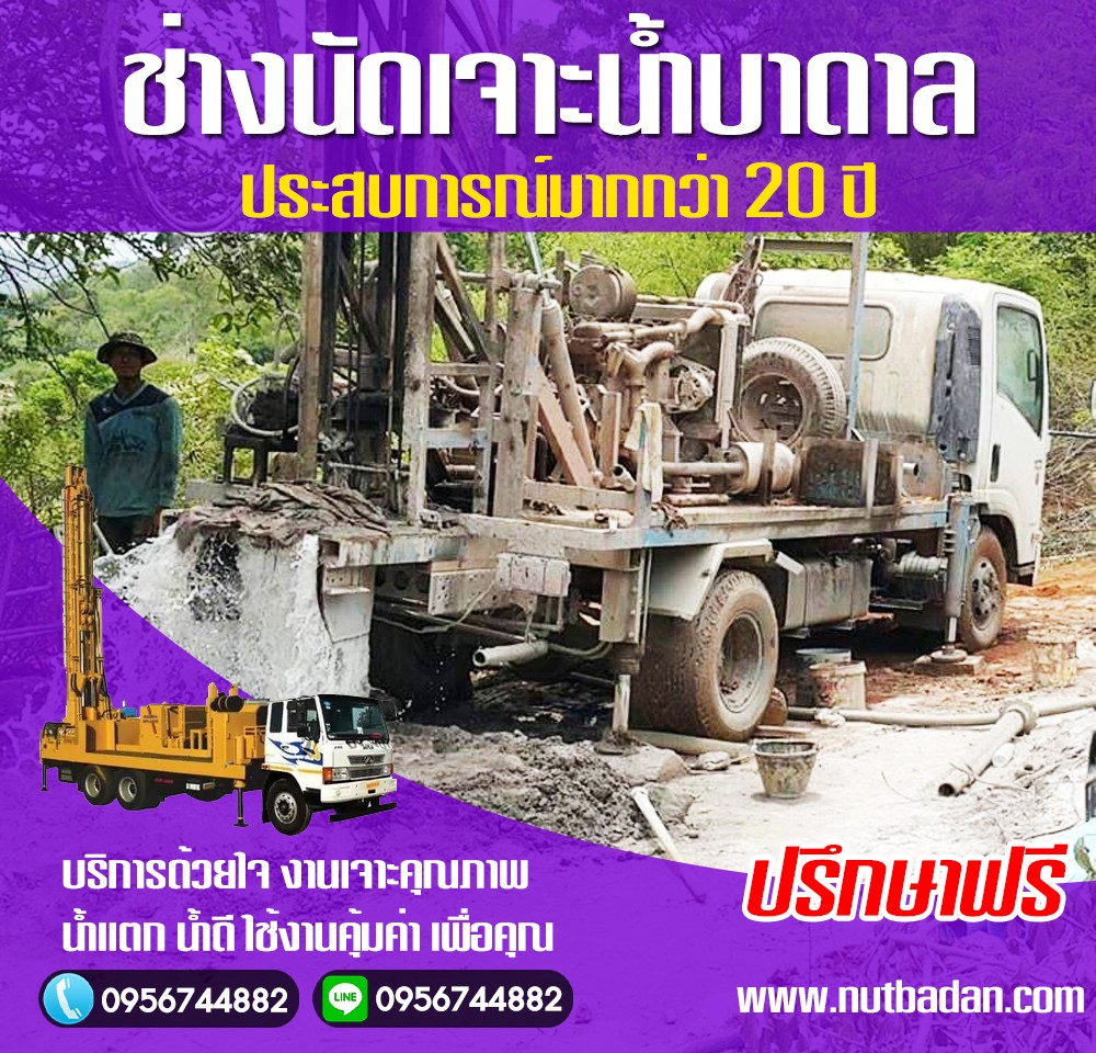 ใช้บริการรับเจาะบาดาลกับ “ช่างนัด” ที่เต็มไปด้วยคุณภาพเป็นที่ไว้วางใจของลูกค้าดีกว่า โดยมีประสบการณ์ยาวนานมากกว่า 20 ปี และมีรีวิวจากการขุดเจาะบาดาลในหลากหลายพื้นที่ของประเทศไทยให้คุณได้รับชมกันอย่างต่อเนื่อง ใช้อุปกรณ์ในการเจาะที่ทันสมัย มีความรู้ในเรื่องของการขุดเจาะบาดาลอย่างเต็มที่ ทำให้ลูกค้าได้พบกับน้ำที่พุ่งแรงเร็วเป็นอย่างดี เป็นน้ำที่สะอาดใช้งานได้จริง สามารถนำไปปรับใช้ได้ทั้งการใช้น้ำภายในครัวเรือน การใช้น้ำในภาคเกษตร ภาคอุตสาหกรรม และอื่น ๆ