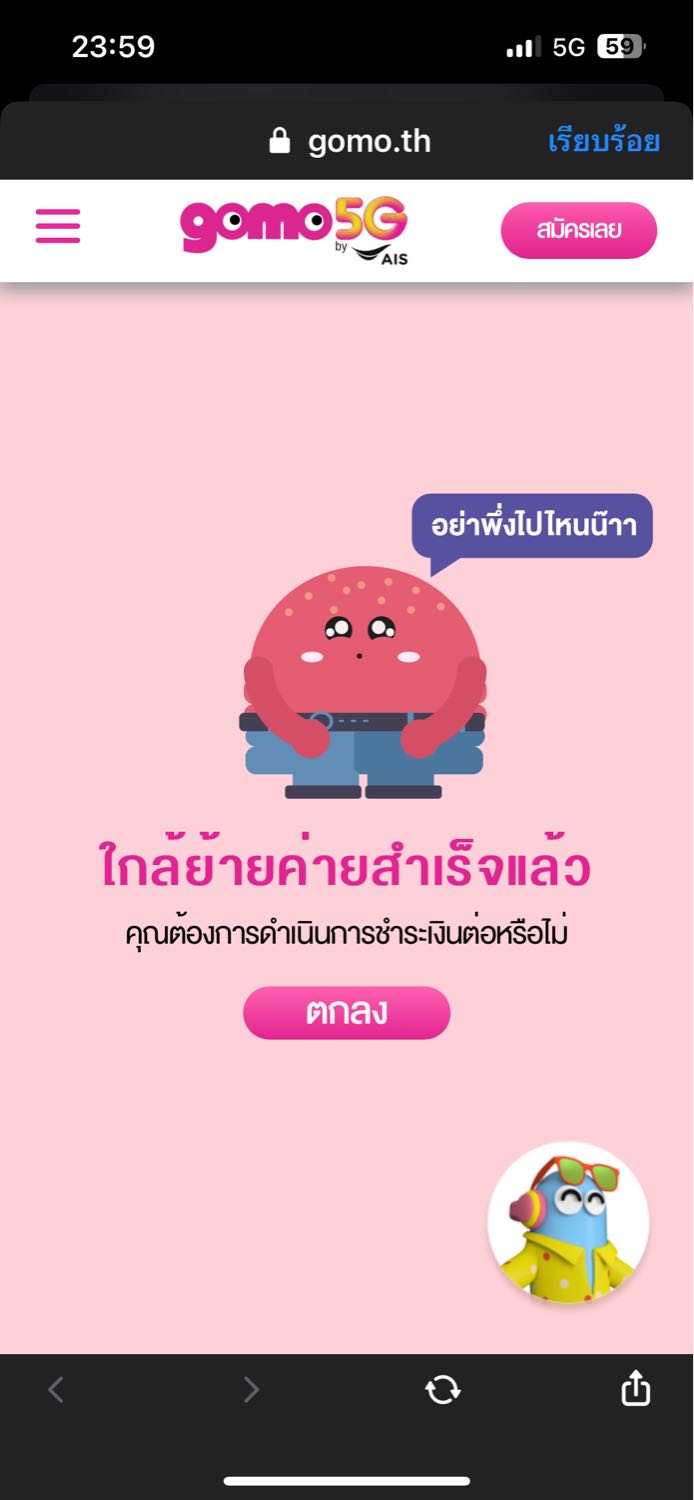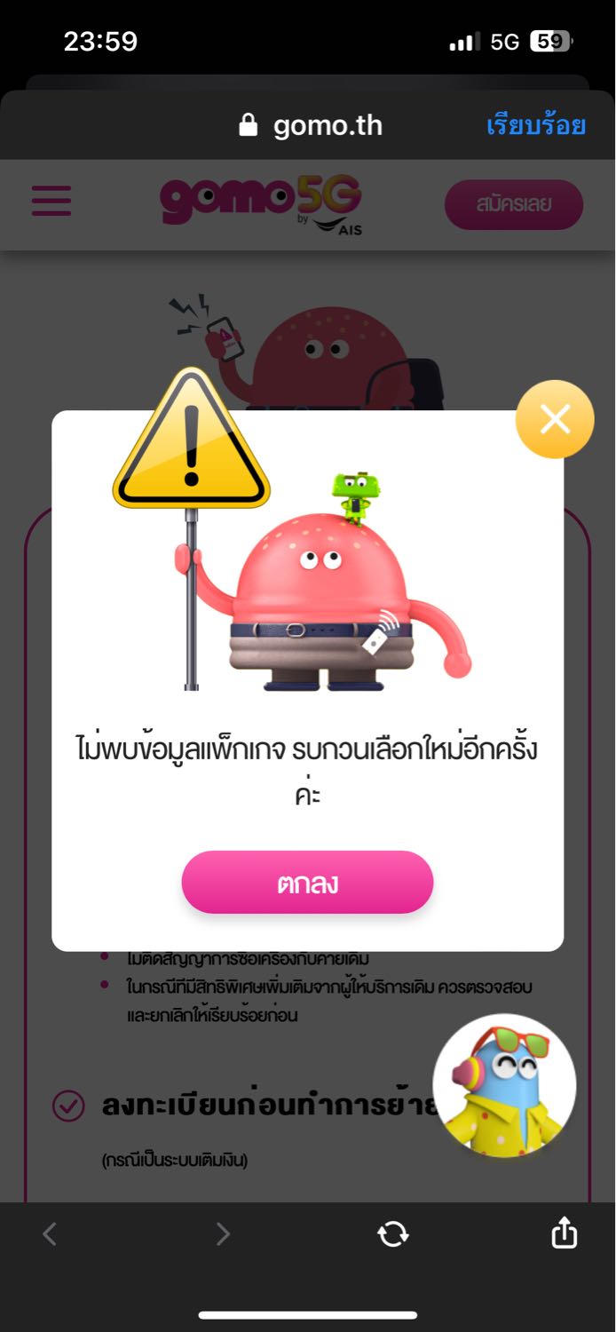 ผมมีปัญหาตอนที่จะเข้าเว็บ gomo คือผมเลือกย้ายค่ายครับ พอเลือกเสร็จผมเลือกโปรนี้