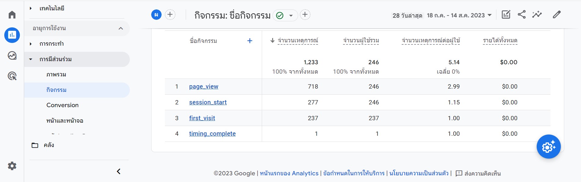 click หายไปใน google analytics 4