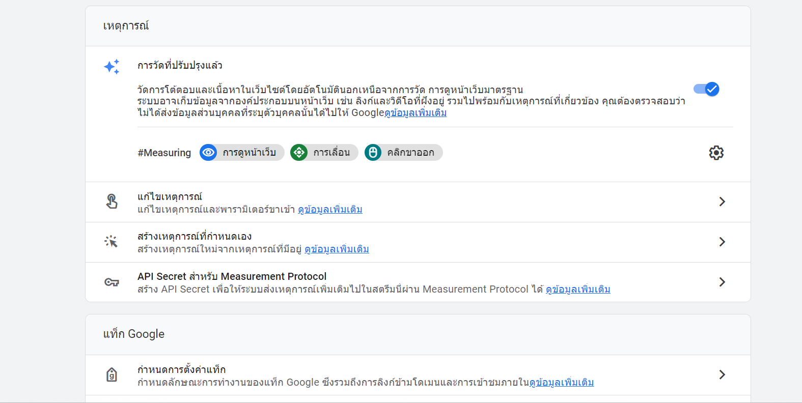event name ชื่อ click ไม่มี ทั้งๆที่กดเพิ่มใน enhanced measurement ไปแล้ว อันนี้อยู่ใน GA4 (Google analytics 4) คือต้องการวัด outbound click แต่ค่า click ไม่ show ใน report คือเราย้ายจาก google analytics version เก่า มา version 4 แล้ว เราควรจะทำยังไงต่อ