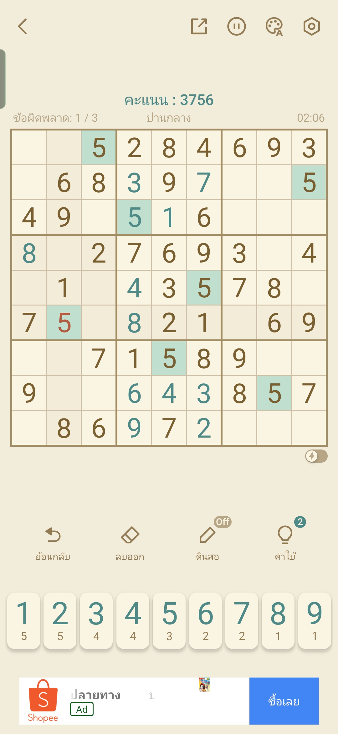 เพิ่มเริ่มเล่นซูโดกุค่ะ