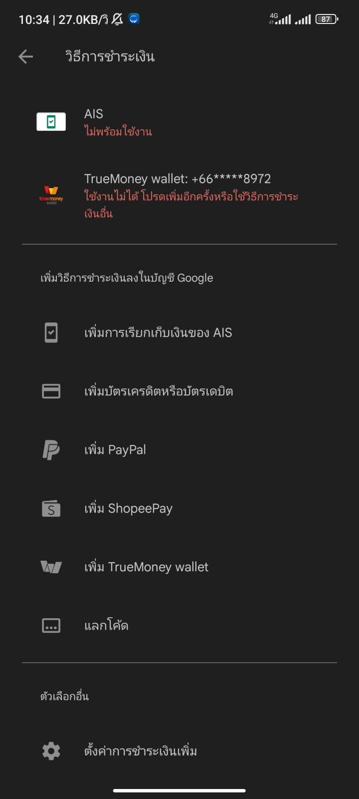 เติมเงินผ่าน true money ไม่ได้