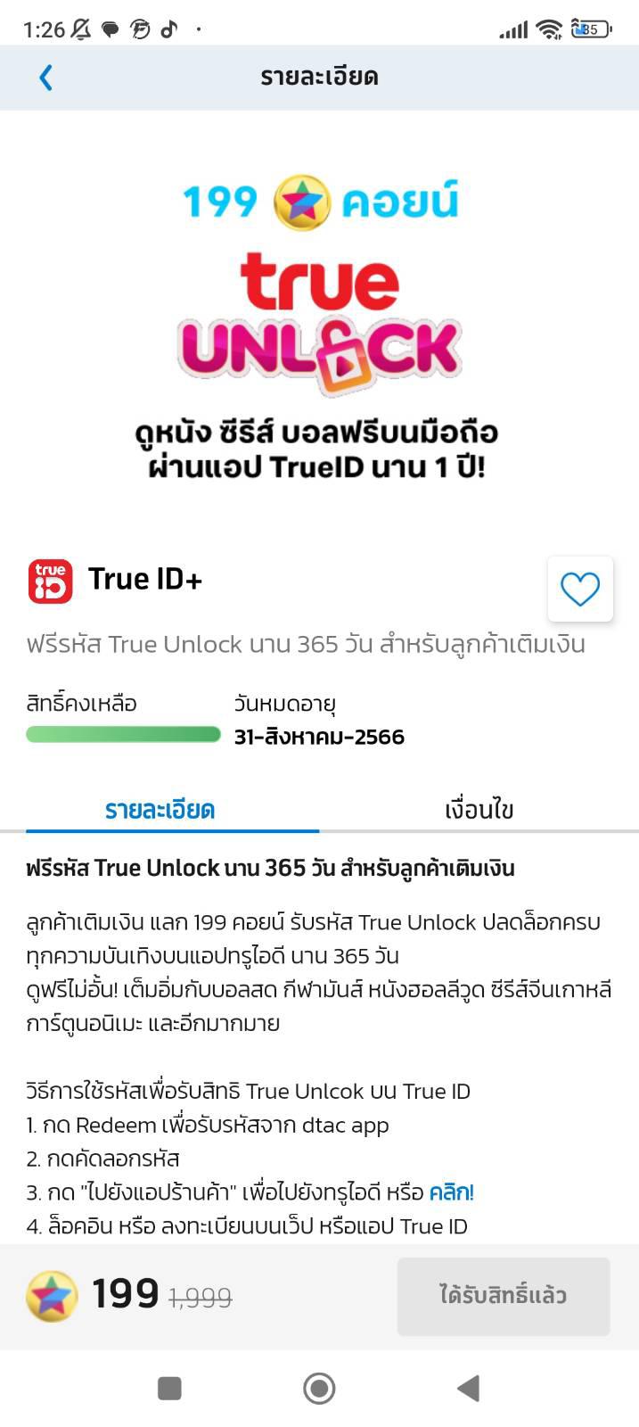 ยังไม่ได้รับรหัสโปรโมชั่น true unlock เลยครับ