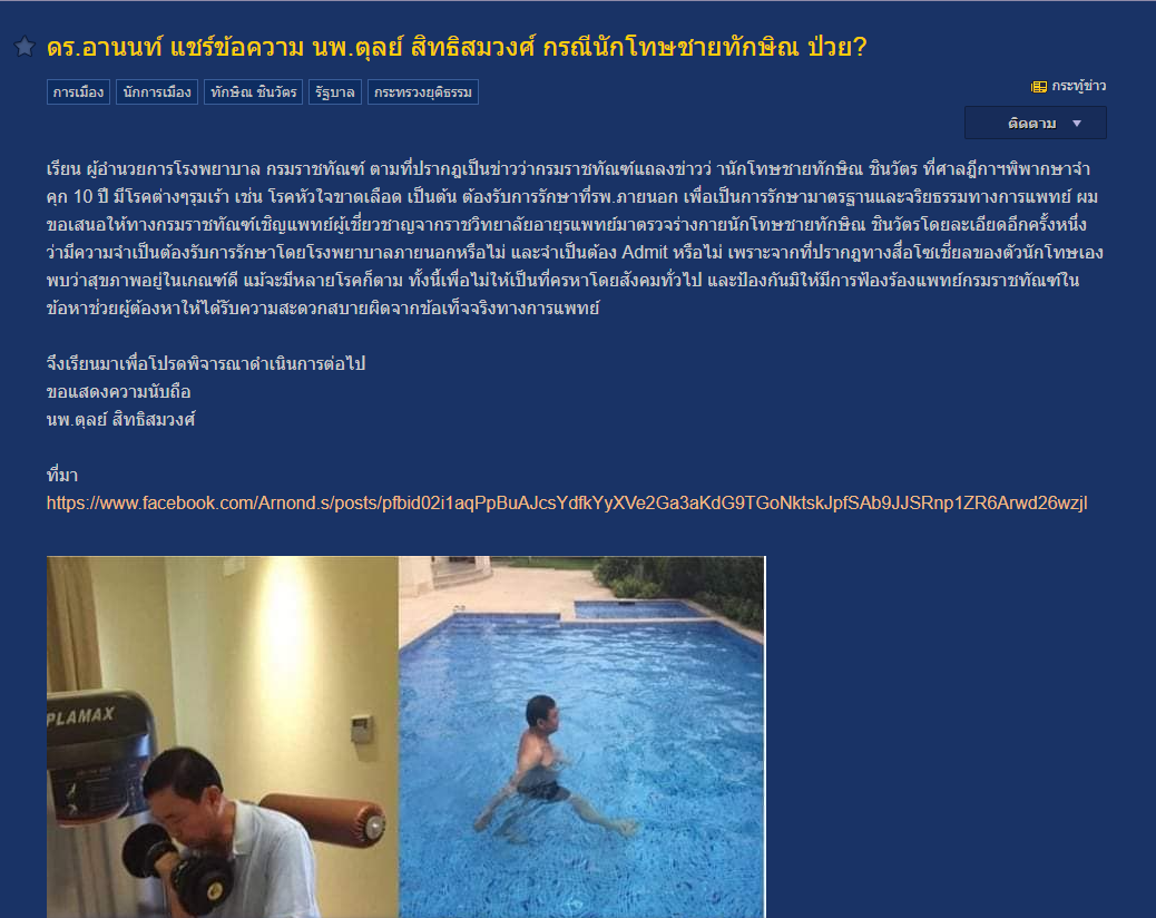แม้วโดนจับโป๊ะ...อุ๊งอิ๊งโพสต์เอง, พาพ่อไปตรวจสุขภาพที่ รพ. ที่สิงคโปร์ เมื่อ 11 กค. ที่ผ่านมา "พ่อสุขภาพแข็งแรงดี !!!"