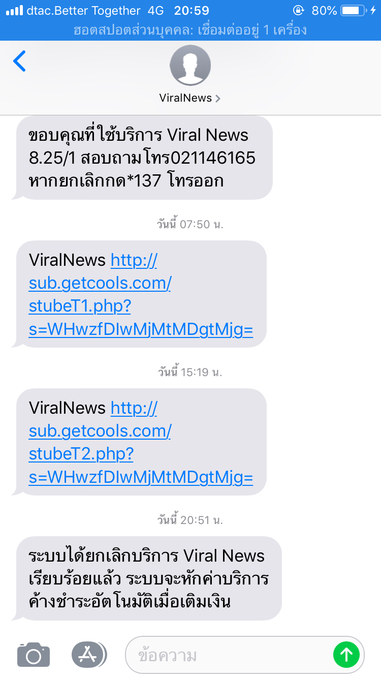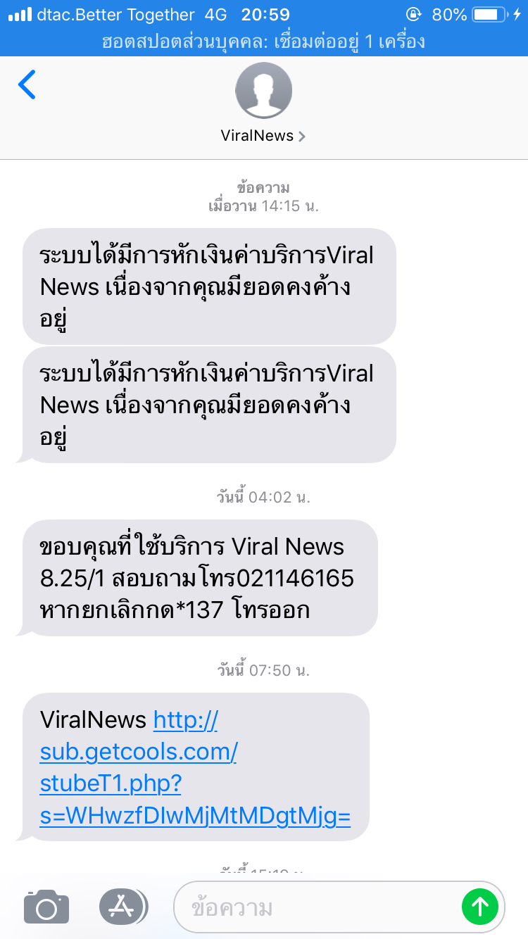 คืออยากสอบถามว่าviralnewsคืออะไรเหรอคะ คือเราได้เติมเงินเข้าเบอร์โทรศัพท์ตามปกติ แล้วก็มีข้อความขึ้นมาตามรูปค่ะ แล้วมันก็หักเงินไปด้วยค่ะ