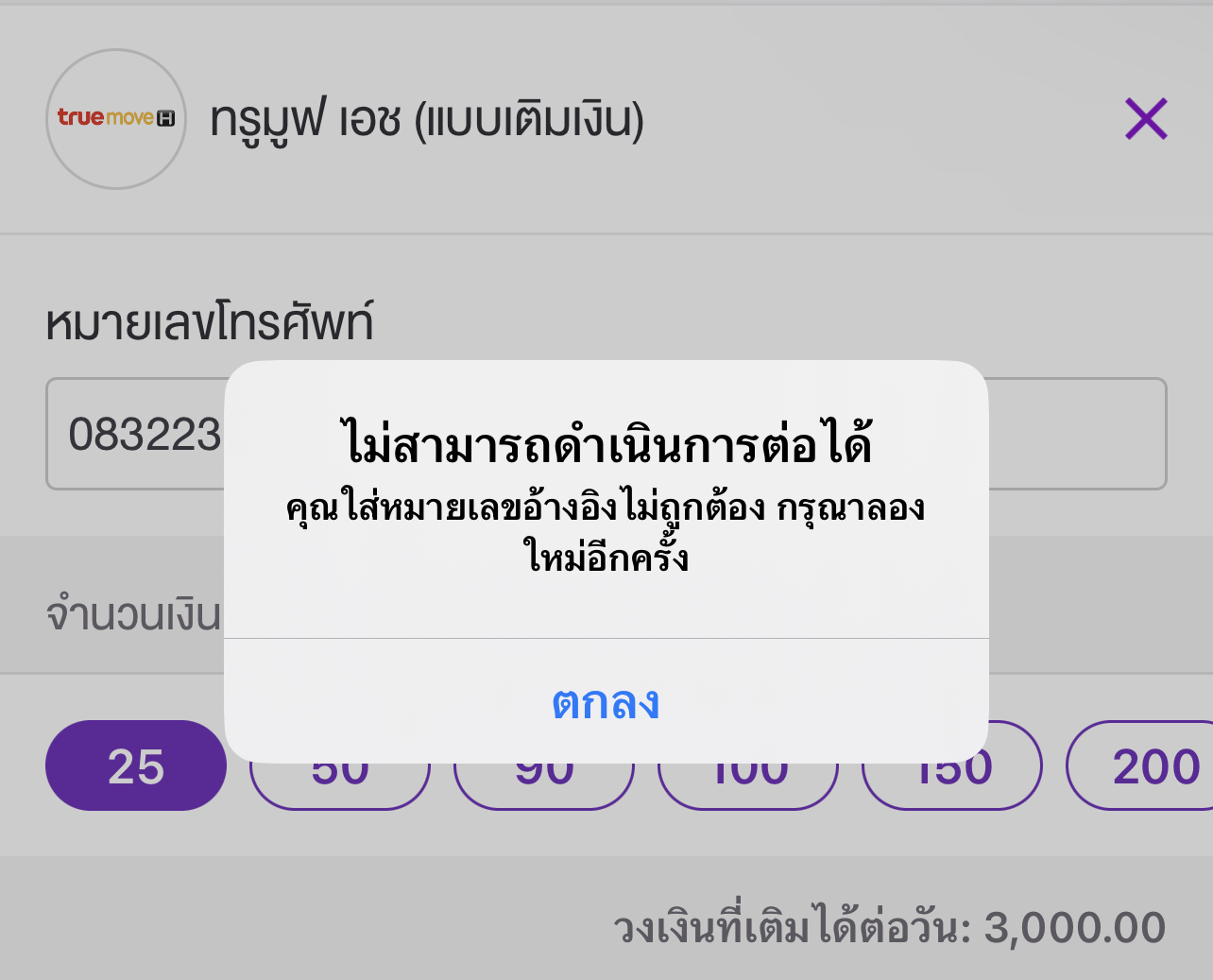 ไม่สามารถเติมเงินเข้าเบอร์ทรู แล้วก็ไม่สามารถสมัครเน็ตหรือเล่นเน็ตได้