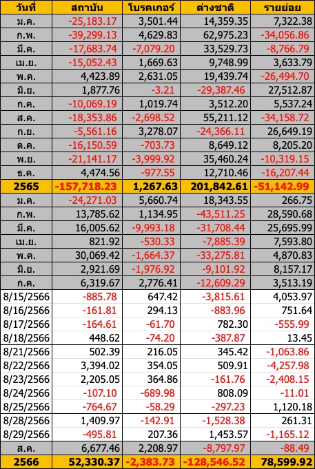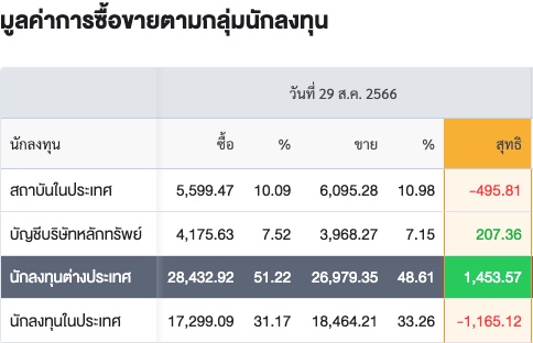 Sinthorn Summary 29/8/2566 : ต่างชาติซื้อสุทธิ 1,453.57 ลบ.