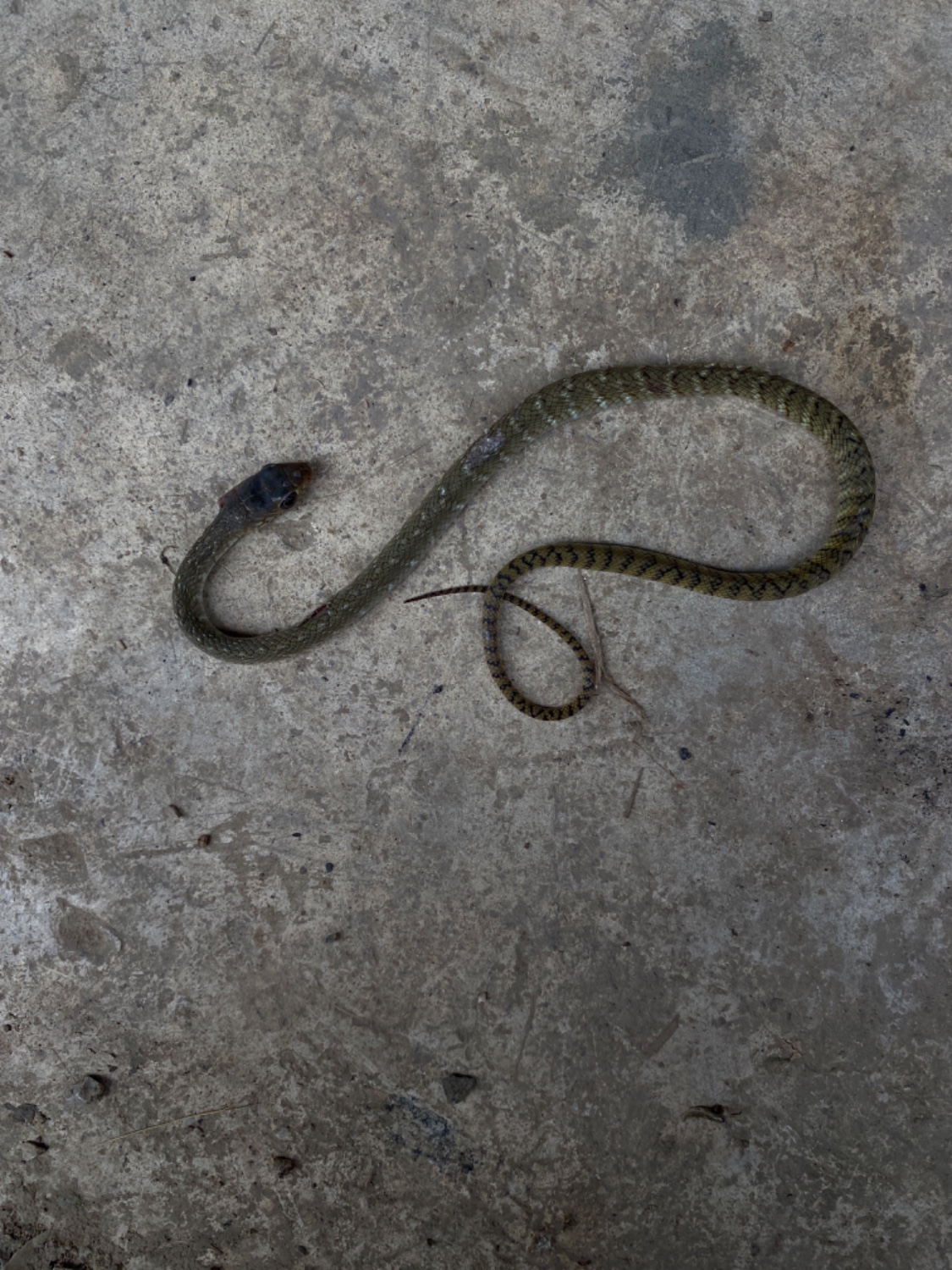 ไม่ทราบงูอะไรครับ โดนแมวฟัดตายเมื่อวาน