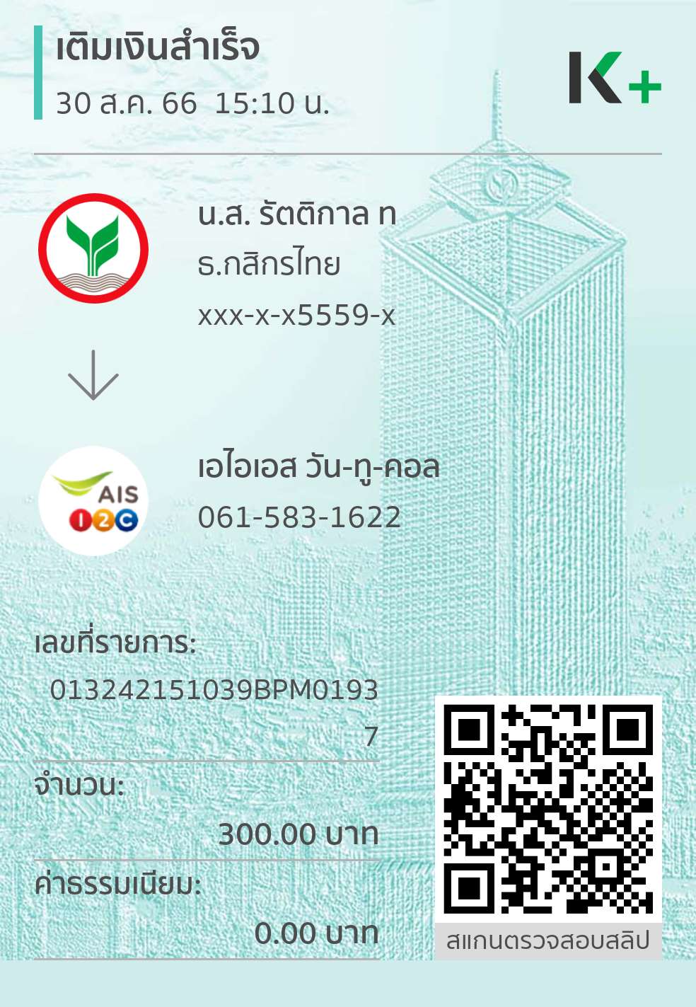 เติมเงินผิดเบอร์ผ่านแอปกสิกร300บาท เติมเข้าของaisผิดเบอร์ เบอร์ ที่จะเติมเงินเข้าคือเบอร์0615831662 เบอร์ ที่เติมผิดคือเบอร์0615831622