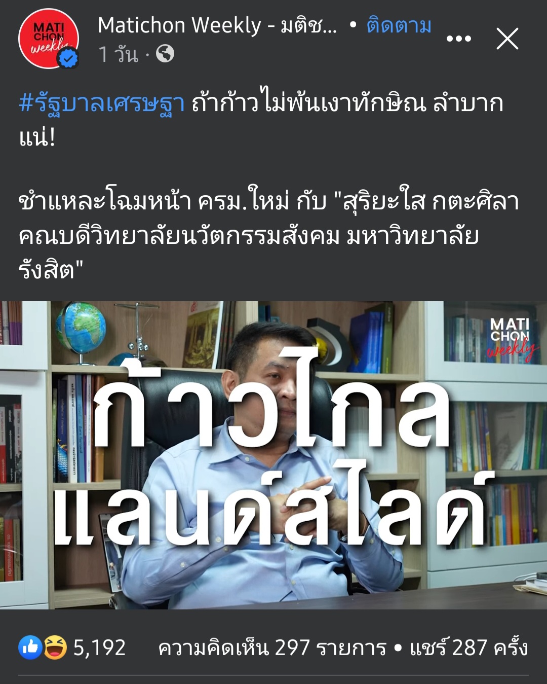 ณ ตอนนี้ถือว่าเป็นโอกาสทองของพรรคที่ไม่ได้อยู่ top tier เลยนะ ที่จะประกาศว่าจะอยู่เคียงข้างพรรคของประชาชน ไม่ว่าจะยังไง แต่ตอนนี้ เห็นมีแต่ข่าวจ้องจะสละเรือกันอย่างเดียว เพราะถ้ามองว่าว่าอีก 4
