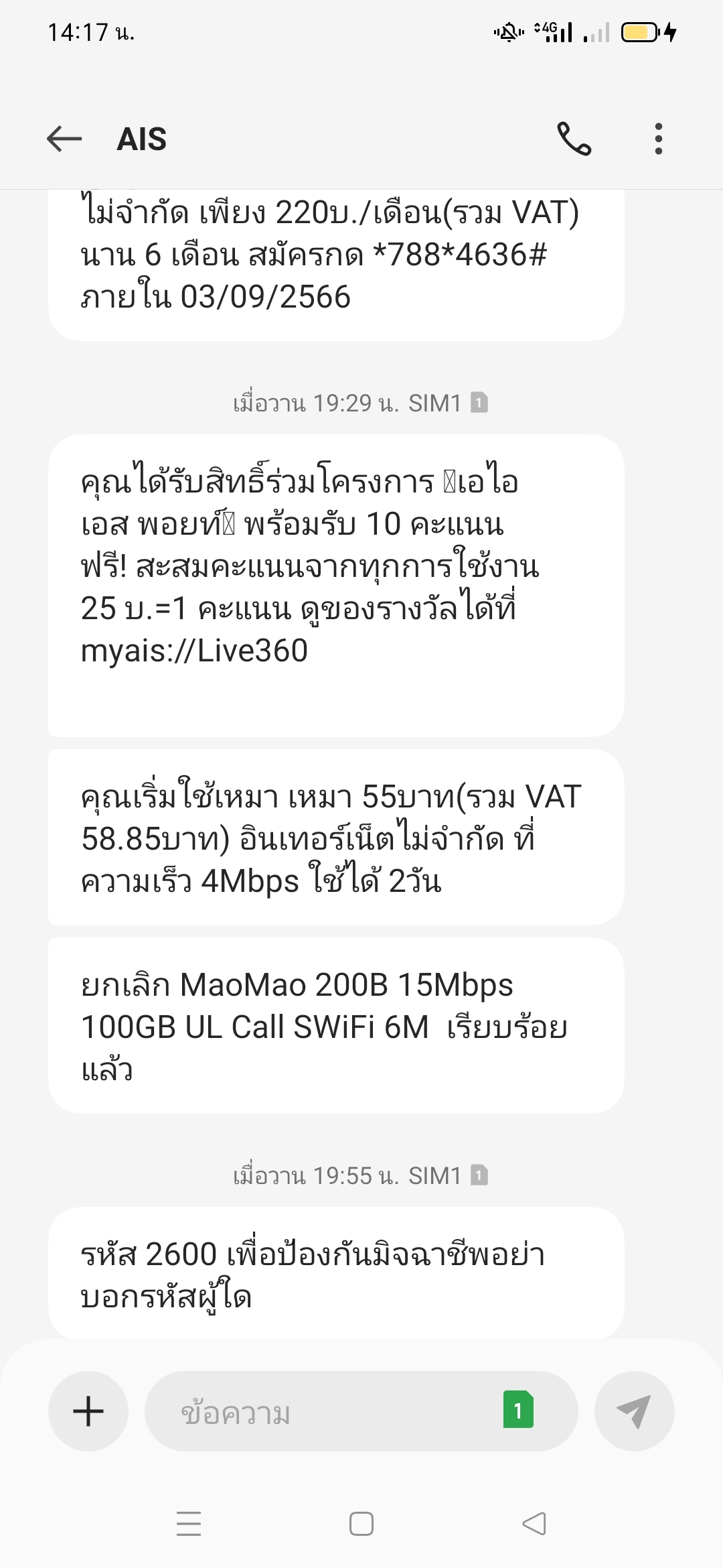 ขอทราบโปร SMS รายวัน และรายเดือนของ Ais ค่ะ