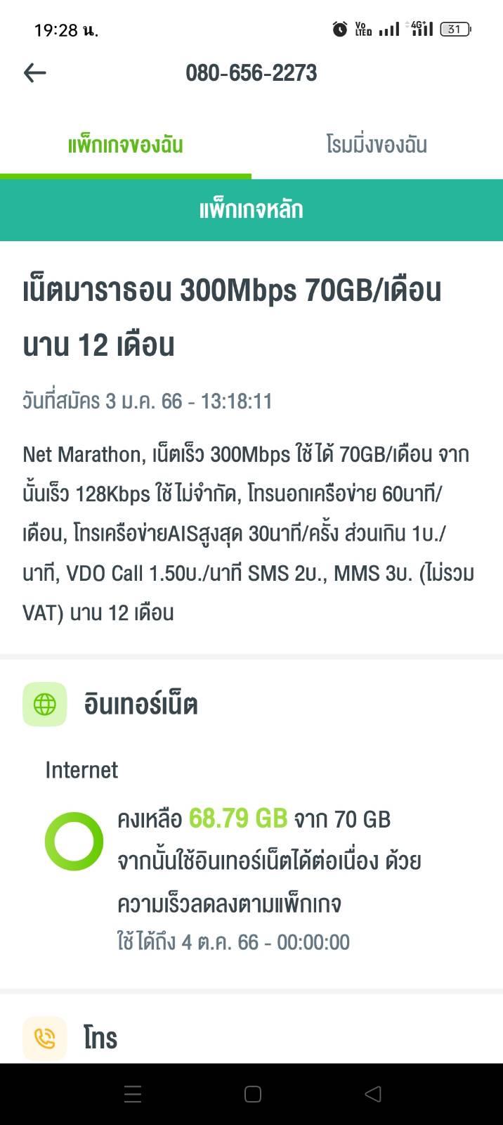 เคยใช้แพ็คเกจรายปี 1,790 บาท เน็ต100gb/10mb โทรฟรีในเครือข่าย30/ครั้ง นอกเครือข่าย60นาที แต่พอครบปี ในแอพmyais ขึ้นว่าปีนี้จะเปลี่ยนแพ็คเกจอัตโนมัติเมื่อแพ็คเกจนี้หมดอายุ 1,990 เน็ต100gb/10mb โทร 1บาท