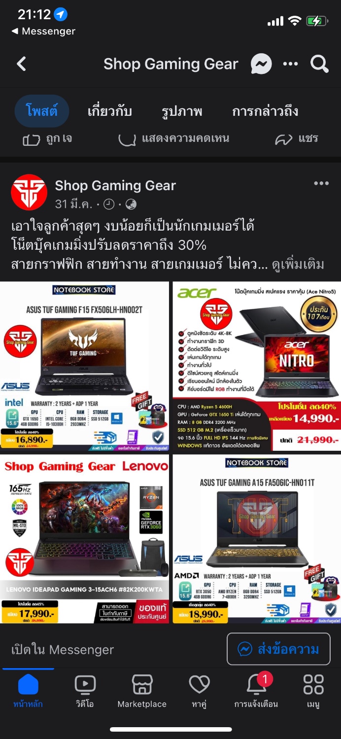 มีใครเคยซื้อโน้ตบุ๊ค เพจ shop gaming gear ในเฟสไหมครับ