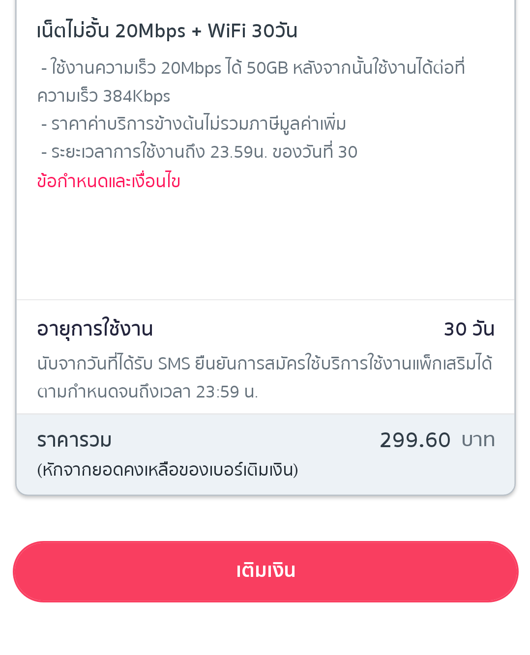 มี sms true แจ้งให้เติมเงิน 30 /9/68 แพคเกจ เน็ตไม่อั้น 4Mbps +Wifi+โทรฟรี ทุกเครือข่าย นาน 30 เมื่อเช้าเติมเงินเข้าไปแล้ว แต่ระบบไม่หักยอดเงิน ทำให้ใช้บริการแพคเกจนี้ไม่ได้ และช่วยยกเลิก บริการข้อคว