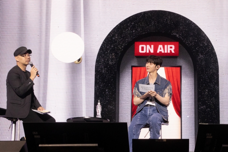 “สวัสดีครับ ผม ฮวังมินฮยอน ครับ คิดถึงมากๆ นะครับ ยินดีต้อนรับเข้าสู่มินิ-คอนเสิร์ต UNVEIL IN BANGKOK นะครับ” แล้วเข้าสู่ช่วงพูดคุยกัน งานนี้ล่ามคนเก่ง คุณยูคอนยอง รับหน้าที่คอยสื่อสารให้เช่นเคย คำถามแรกเกี่ยวกับเพลง Hidden Side ที่ดูไม่เหมือนเดิม ซึ่ง มินฮยอน อธิบายว่า