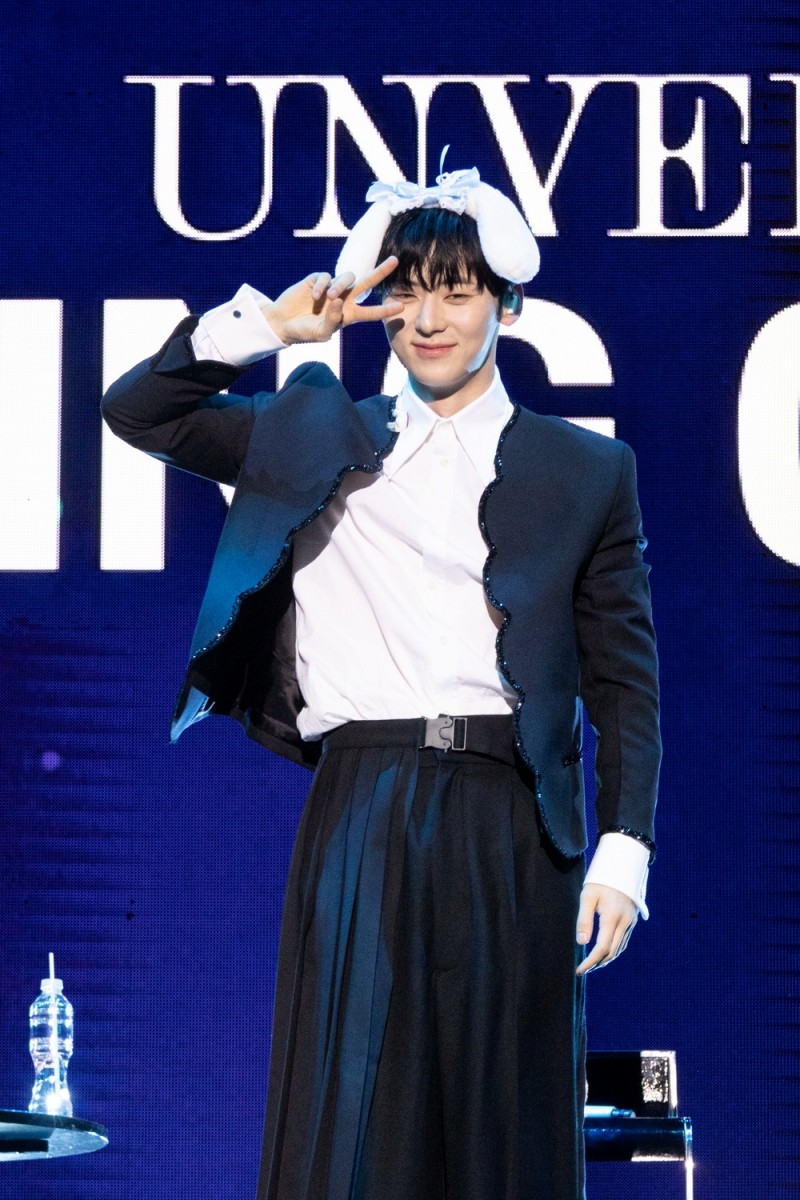 “Universe เป็นเพลงที่ผมชอบมาก ครั้งนี้ใส่ทำนองเปียโนเข้าไปด้วย เป็นยังไงบ้างครับ เดือนสิงหาคมเป็นเดือนที่ผมชอบมากๆ เลย และได้ใช้ช่วงเวลานี้กับฮวังโด หวังว่า ฮวังโด จะเก็บช่วงเวลาดีๆ เหล่านี้ไว้นะครับ” จากนั้น มินฮยอน ก็ขอถ่ายรูปร่วมกับ ฮวังโด เป็นที่ระลึก แต่โดนเซอร์ไพรส์ด้วยโปรเจ็คท์น่ารักๆ ก่อนจะหันมาเจอแผ่นป้ายสโลแกนนับพันที่เขียนว่า