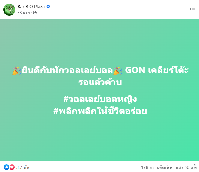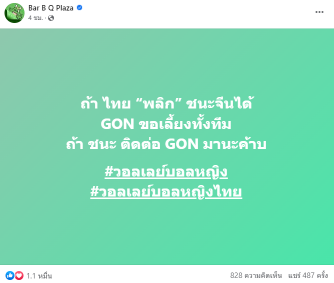 บาร์บีก้อนเตรียมเลี้ยงวอลเลย์บอลสาวไทยแบบนี้