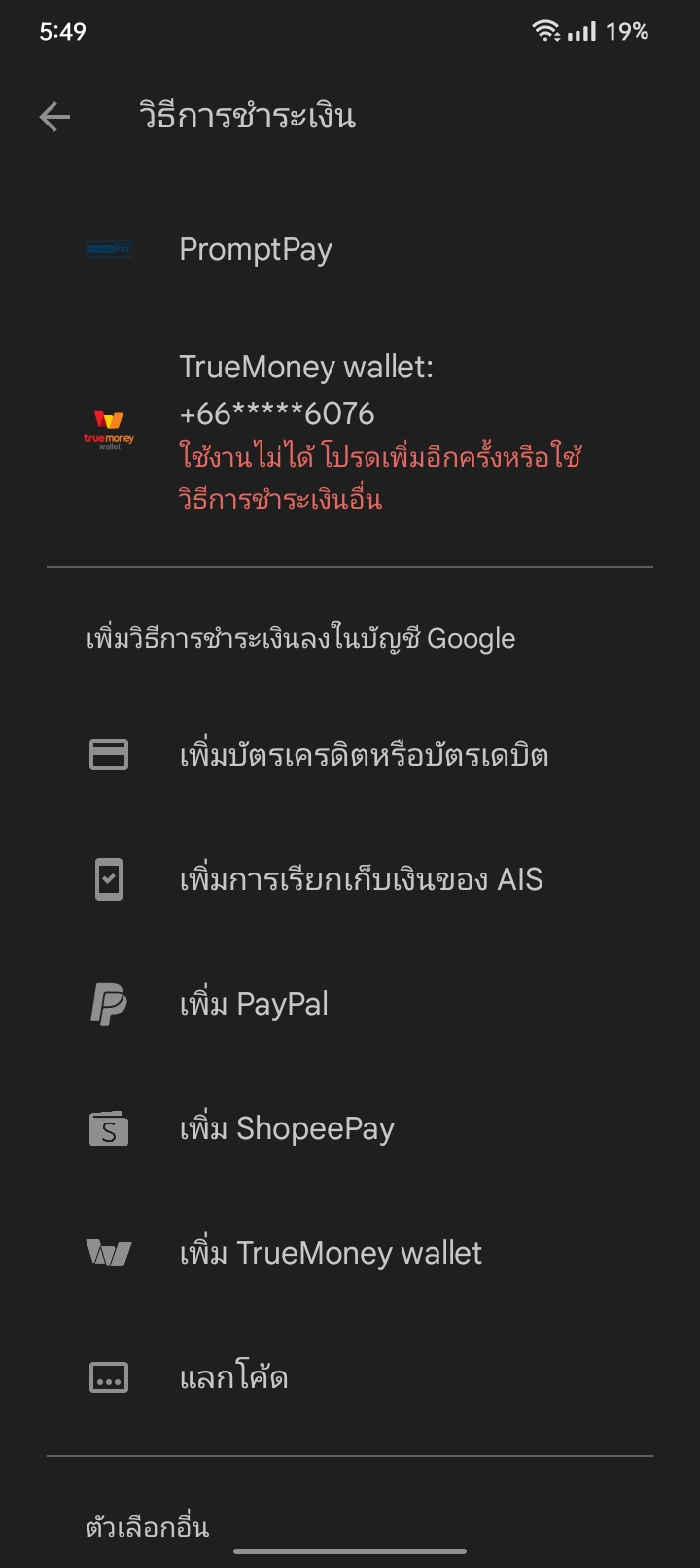 ผมเพิ่มบัตรใน play store แต่ว่ามันไม่ได้อะ