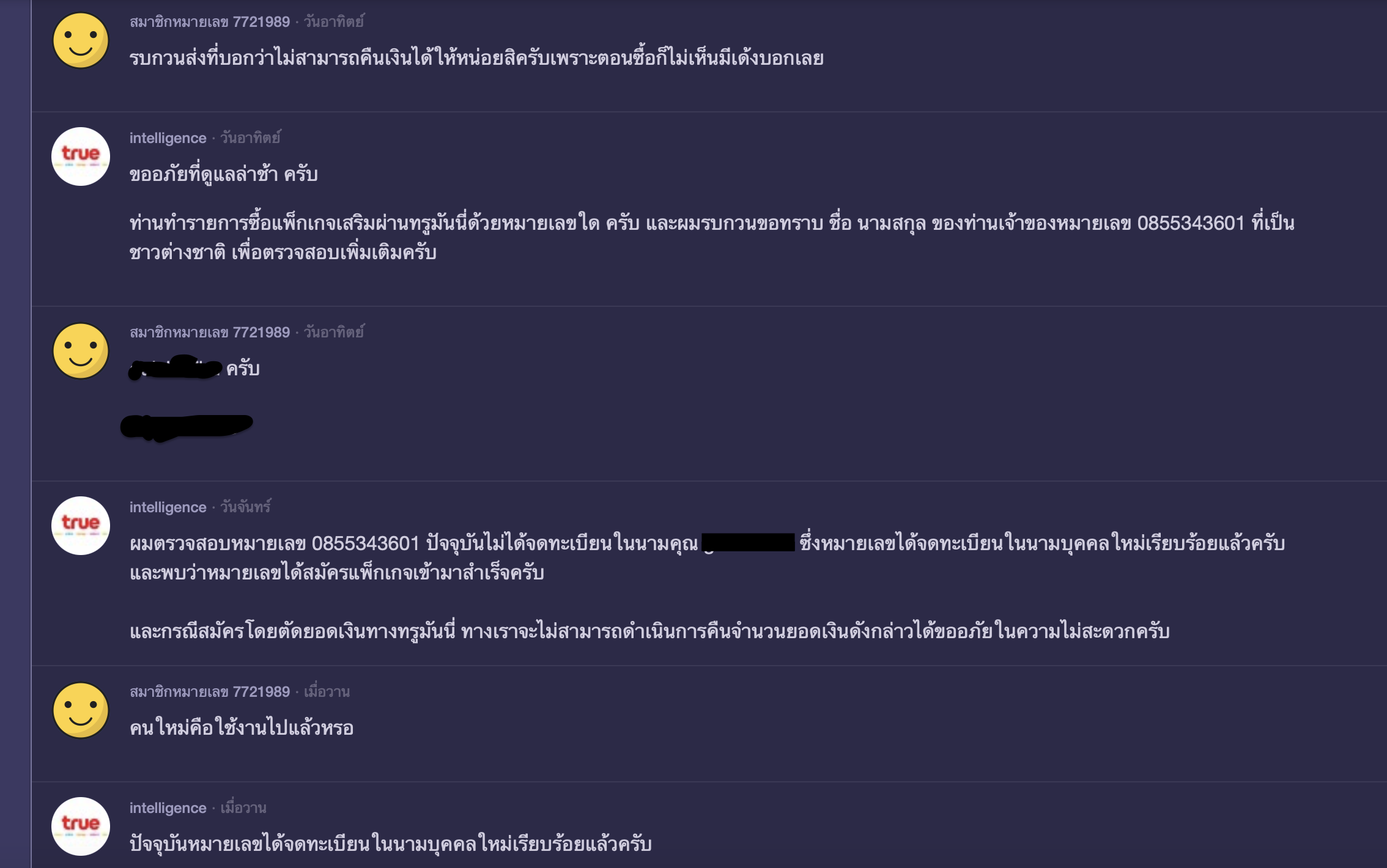โดน True โกง ผมเติมเงินผ่าน true money เติมให้เบอร์ท รูแล้วใช้บริการไม่ได้ไม่มีการคืนเงินติดต่อ เจ้าหน้าที่ก็โยน