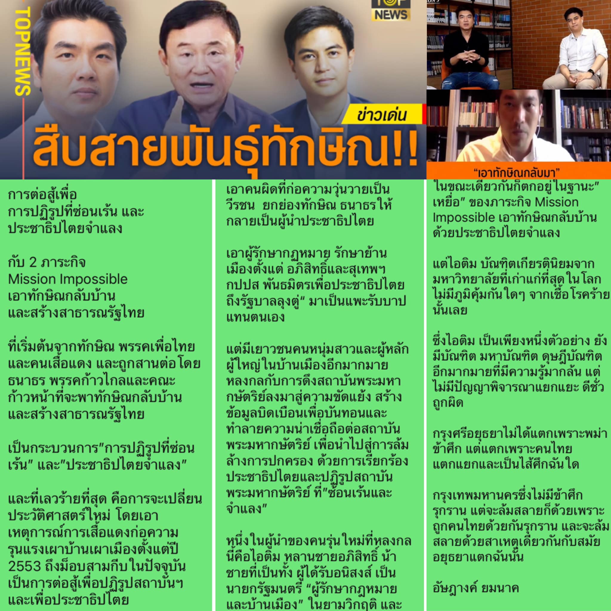 สืบสานพันธ์ทักษิณ ปัจจุบัน เกิดขบวนการล้มล้างการปกครองที่ศาลรัฐธรรมนูญตัดสินแล้ว