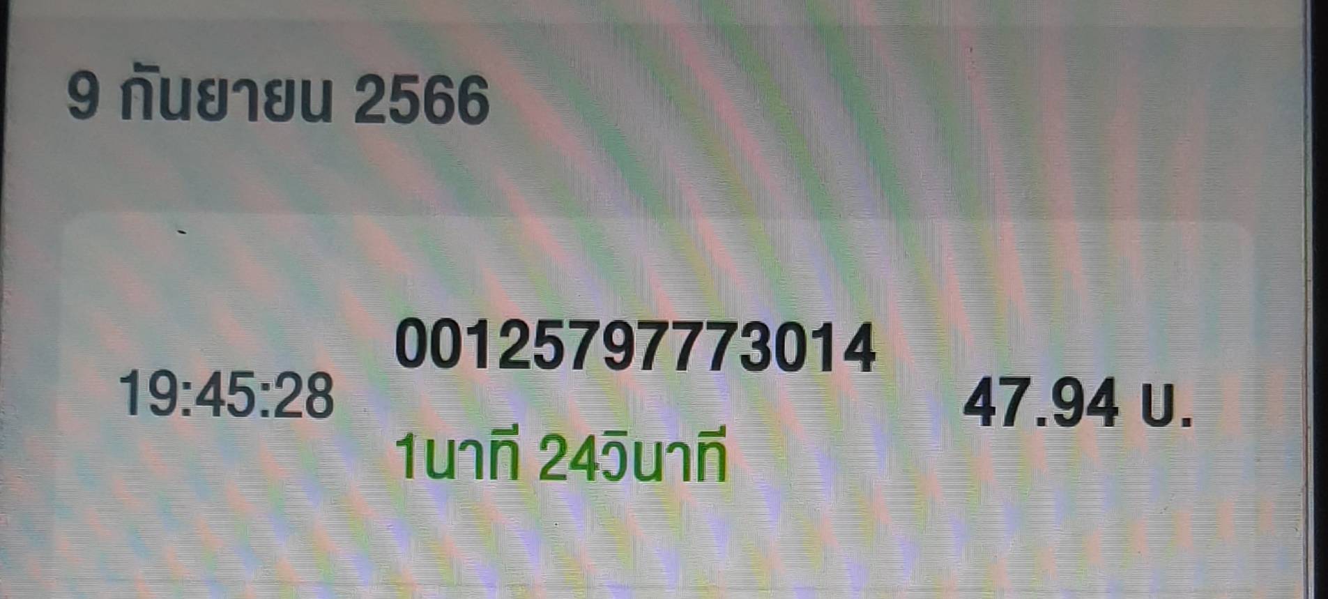 - เวลา 19.45 น. โดนหมายเลข 00125797773014 กินเงินไป 47.94 บ.