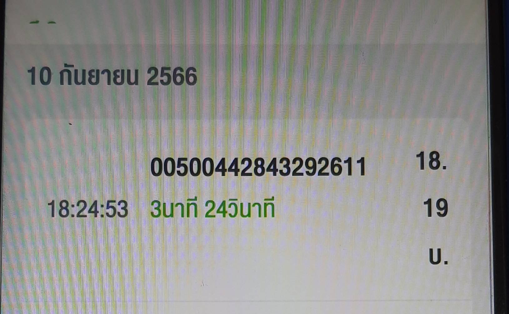 - เวลา 18.24 น. โดนหมายเลข00500442843292611 กินเงินไป 18.19 บ.