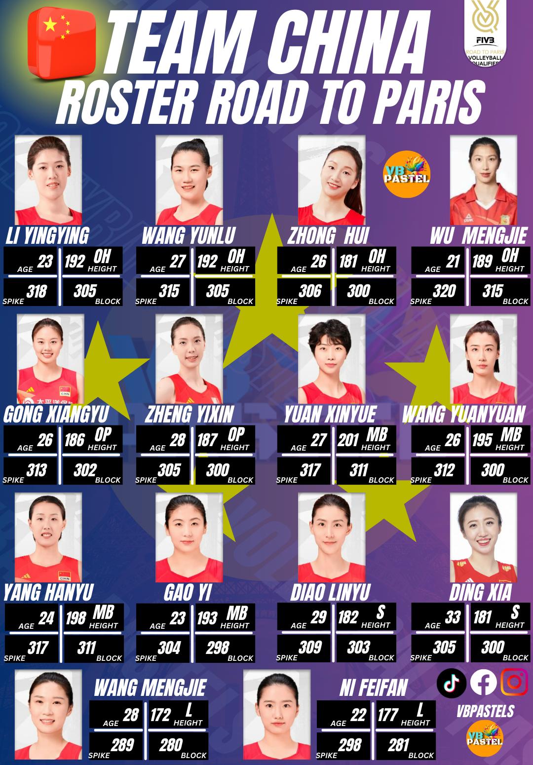Outside Hitter : 1. Li Yingying 2. Zhu Ting 2. Zhang Changning 3. Wu Mengjie Opposite Spiker : 5. Gong Xiangyu 6. Zheng Yixin Setter : 7. Diao Linyu 8. Ding Xia Middle Blocker : 9. Y
