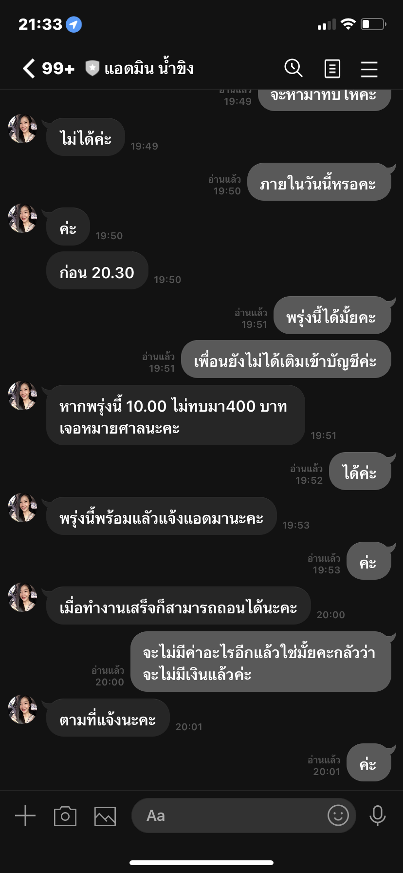 ทำงานกดออเดอร์แล้วต้องเติมเงินแล้วพอบอกจะไม่ทำก็ขู่แจ้งคงาม